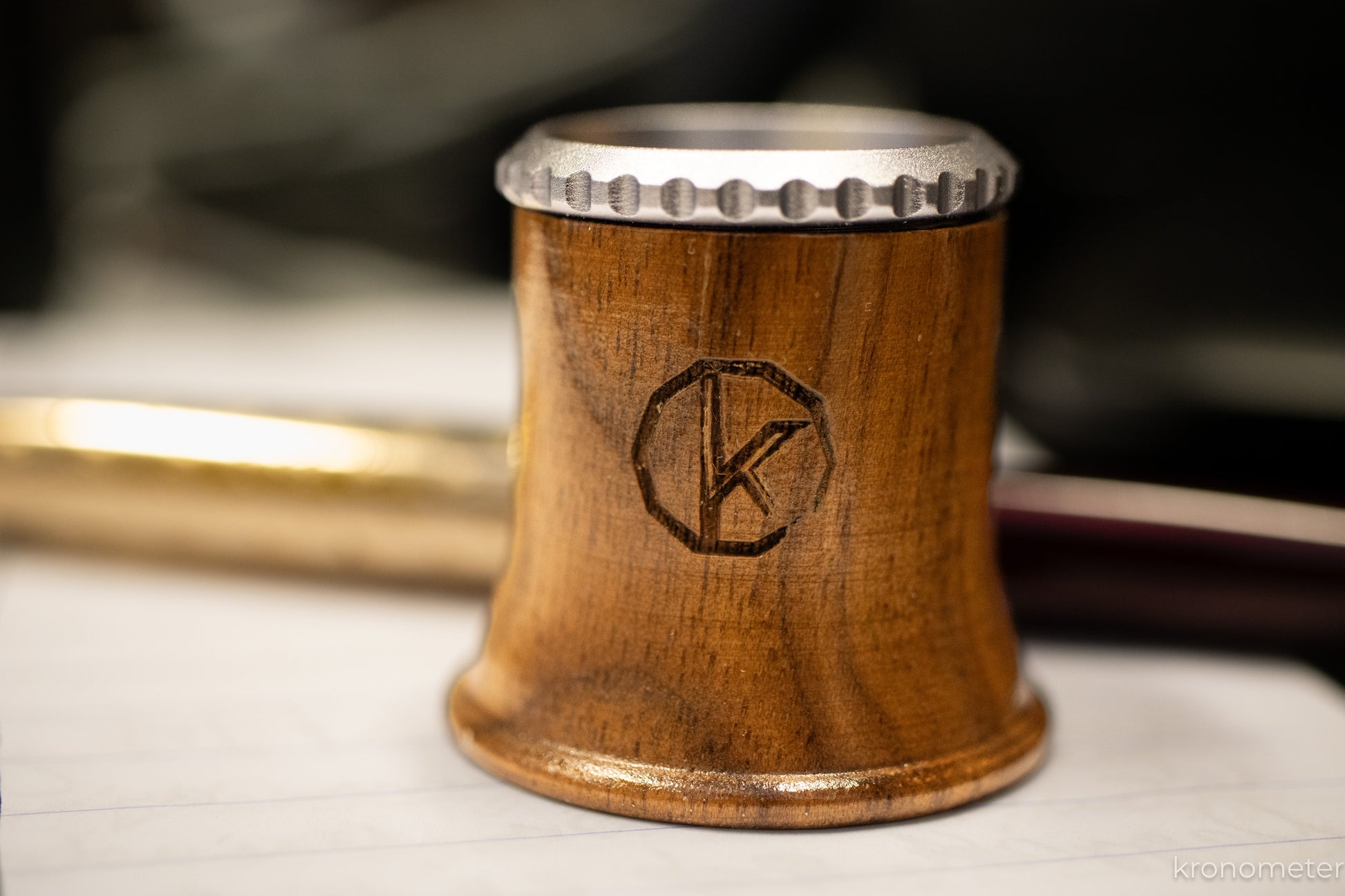 Itt van! VÉGRE megérkezett a fából készült lupe. 5x-ös nagyítás, igényes kidolgozás diófából, lézergravírozott Kronometer logó.