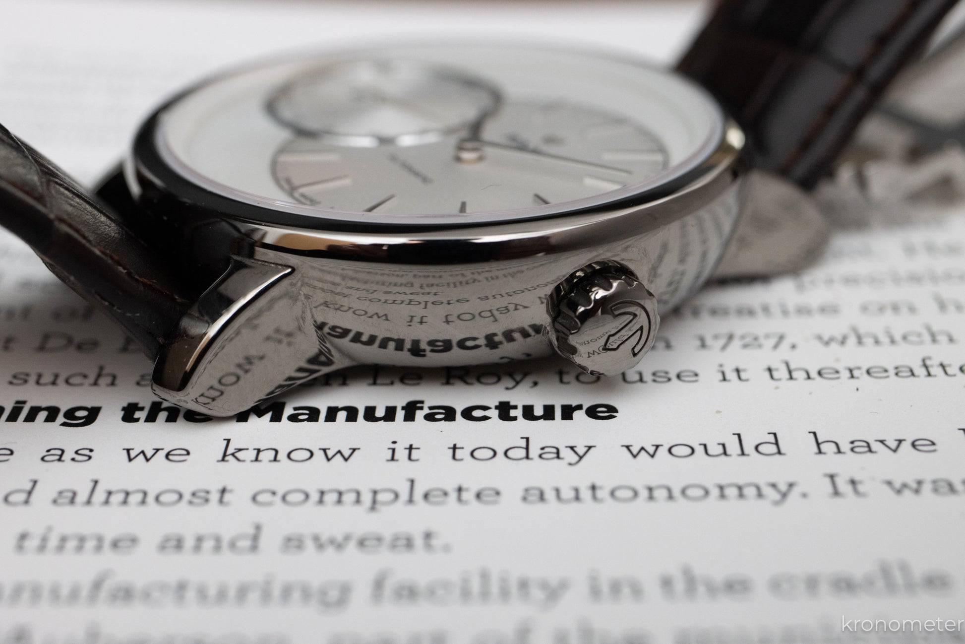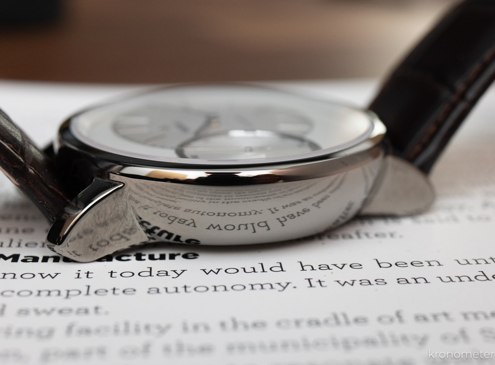 Ha nem is állnak érte úgy sorba az emberek, mint a Rolexekért 2022-ben, de elvitathatatlan érdeme, hogy a kerámia tok nem karcolódik. Tehát adott egy 43 milliméter átmérőjű tükörpolírozott kerámia tok, ami NEM KARCOLÓDIK. Igényes, letisztult fehér számlap, külön másodperc segédszámlappal, ami majdnem akkora mint a számlap maga, ezért is GrandeSecond az óra neve.